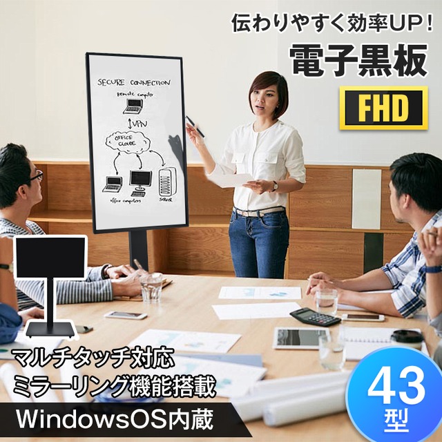 電子黒板 43インチ FHD ディスプレイ モニター マルチタッチ タッチパネル FHD 画面共有 スタンド付き 縦横対応 NS