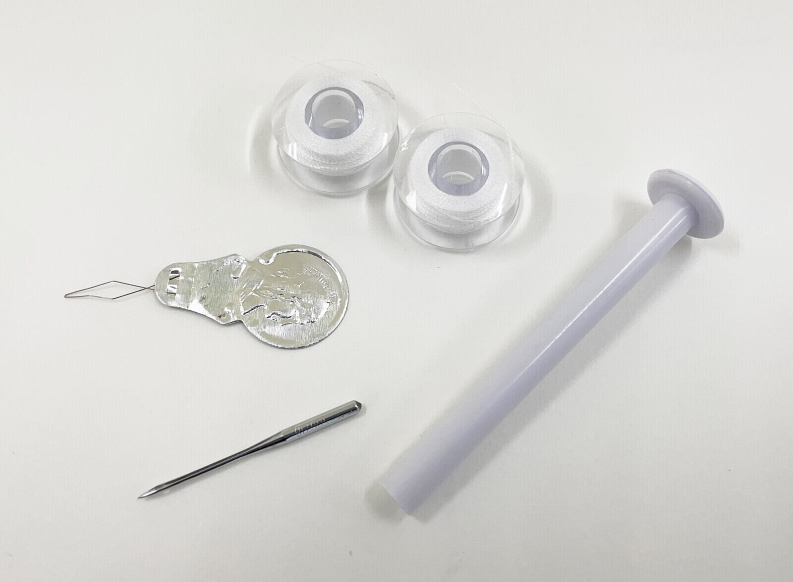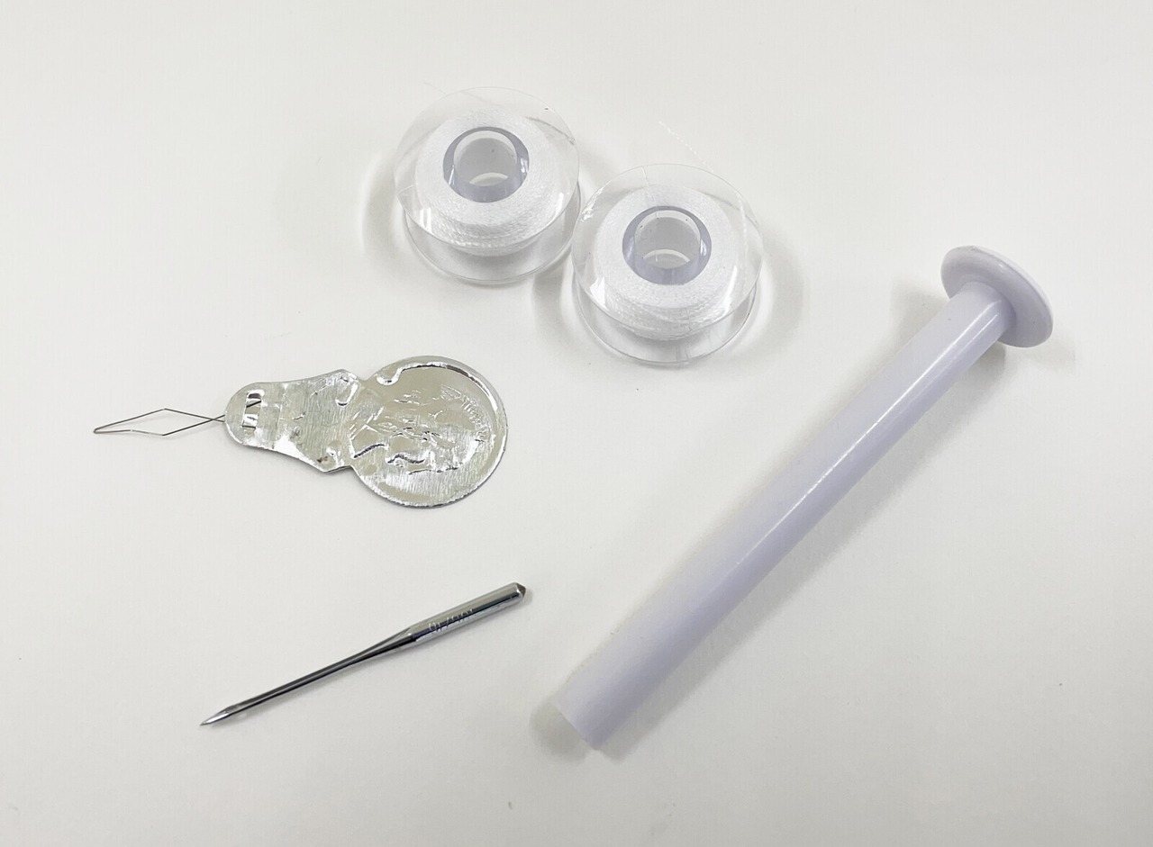 ■付属品:スピンドル(ミシン糸用)×1、糸通し、ボビン×3、ミシン針×2