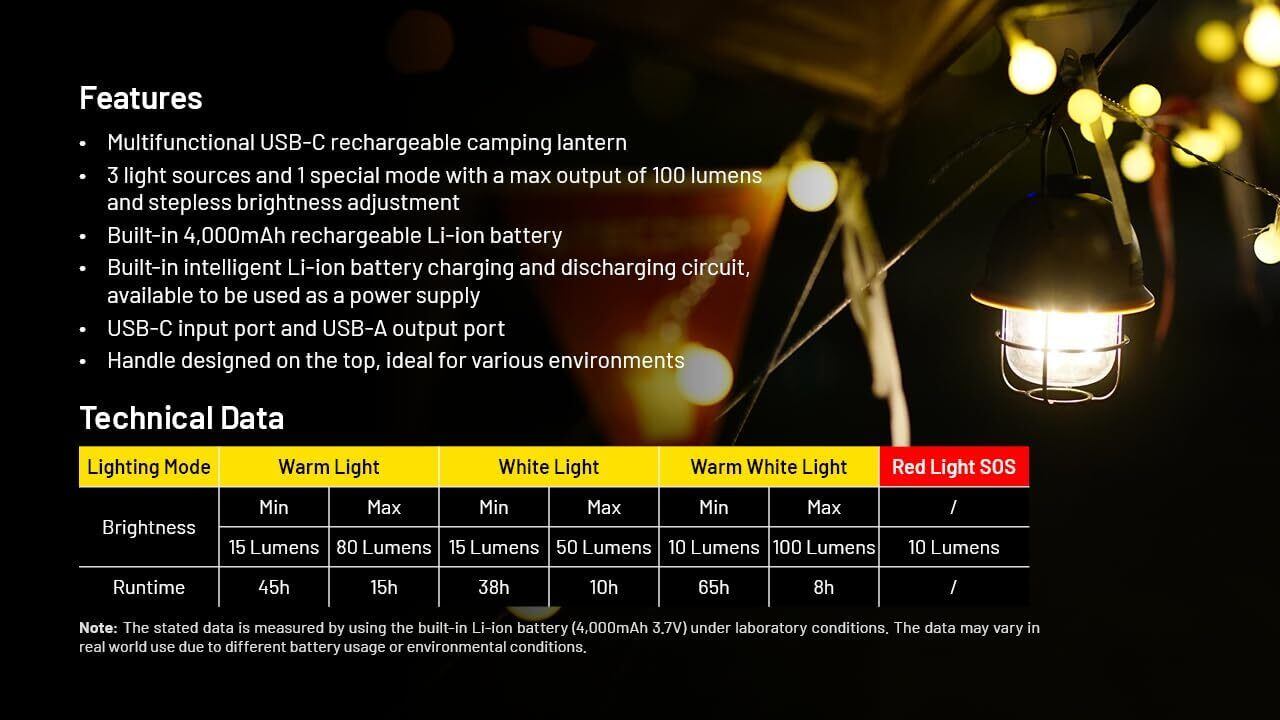NITECORE 2-in-1 LR40 LEDキャンプライト ランタン パワーバンク 100lm 3光源 USB-C充電式 レトロ キャンプ インテリア AEX