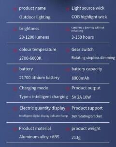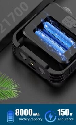 充電池: リチウムイオン電池(2*21700: 8000mAh)