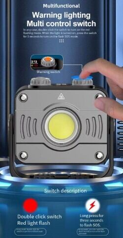 作業投光器 強力LED COB 8000mAh 無段階調光 充電式 防水パワーバンク ランタン キャンプ 夜間工事 レスキュー 夜市 点検修理 AEX
