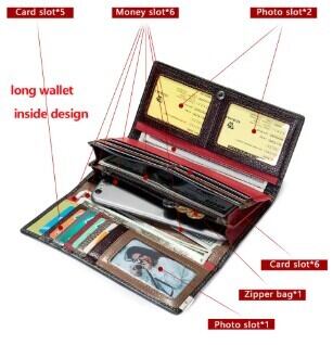 内部スロットポケット、携帯電話ポケット、ファスナー付きポケット、キーホルダーホルダー、コンパートメント、小銭入れ、札入れ、フォトホルダー、カードホルダーを搭載。