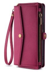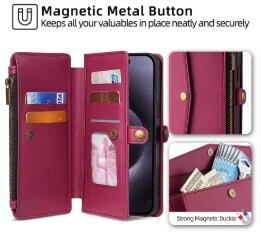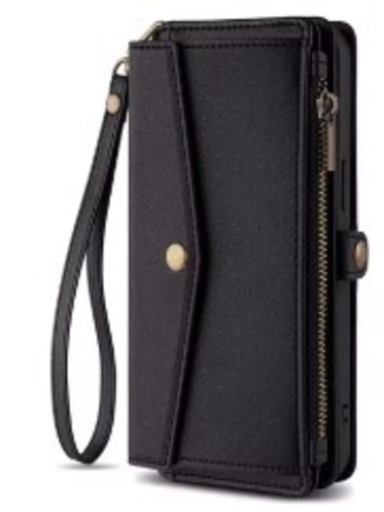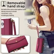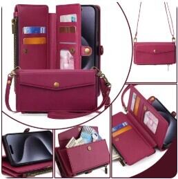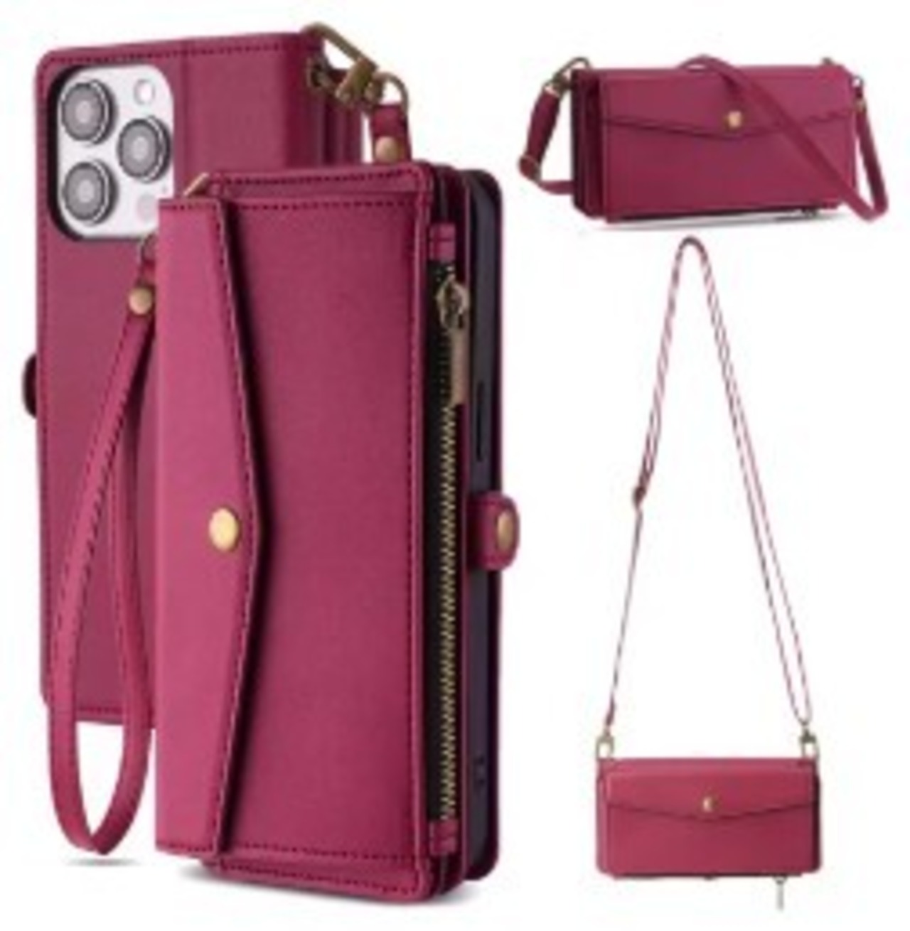 iPhone 多機能レザーウォレットケース クラムシェル 360度保護 ジッパー クロスボディ ストラップ ギフト AEX