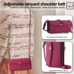 機能:カードホルダー×5、ジッパー付き収納×1、キャッシュスロット×1、フォトウィンドウ、マグネット開閉、ハンドストラップ、ショルダーベルト、キックスタンド、耐衝撃性