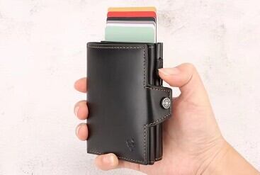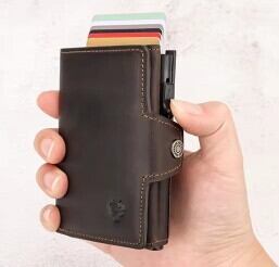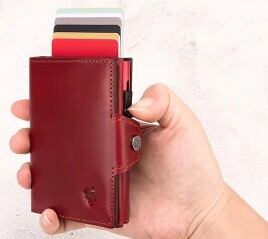 上質な本革と機能美。ポップアップ式カードホルダーで、スマートな支払いを。