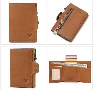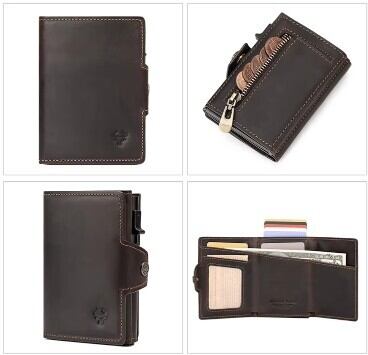 HUMERPAUL メンズ本革ウォレット クレイジーホース カードホルダー マネーポケット ポップアップ ミニマリスト財布 RFIDブロック スリム ギフト AEX