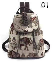 ヴィンテージキャンバスに、ナショナルスタイルの幾何学模様と刺繍を施した、ボヘミアンテイストのバックパックです。ジャガード織の生地とパッチワークが、独特の風合いを醸し出しています。20-35Lの容量があり、普段使いから旅行まで幅広く活躍。携帯電話用ポケットやジッパー開閉など、機能性も充実しています。