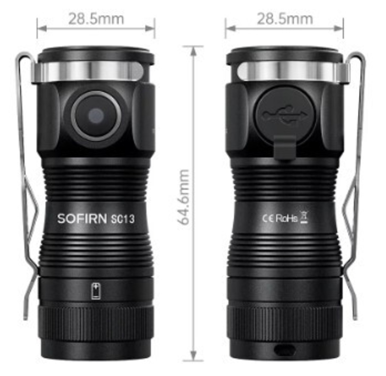 Sofirn ミニフラッシュライト SC13 LED 1300lm 18350 USB充電式 6000K 防水IP68 キーホルダー 緊急トーチ 点検修理 夜間作業 ナイトウォーク ギフト AEX