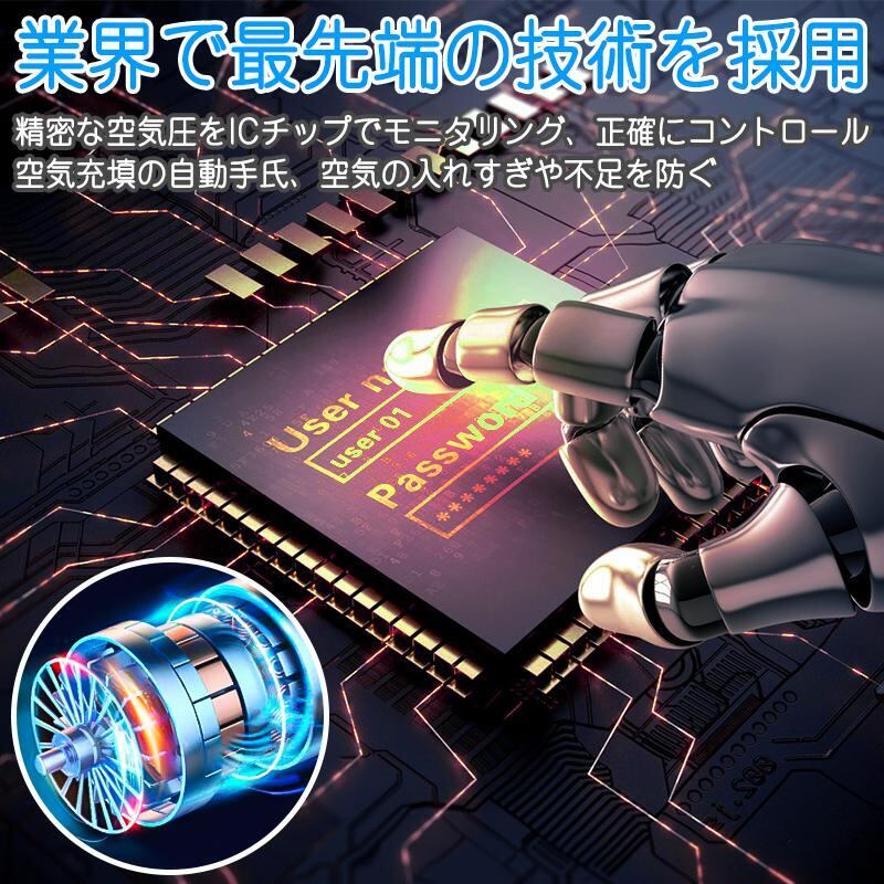 ・IC自動制御:設定した空気圧で自動停止するIC制御機能を搭載。過充填の心配がなく、安全かつ正確に空気を入れることができます。