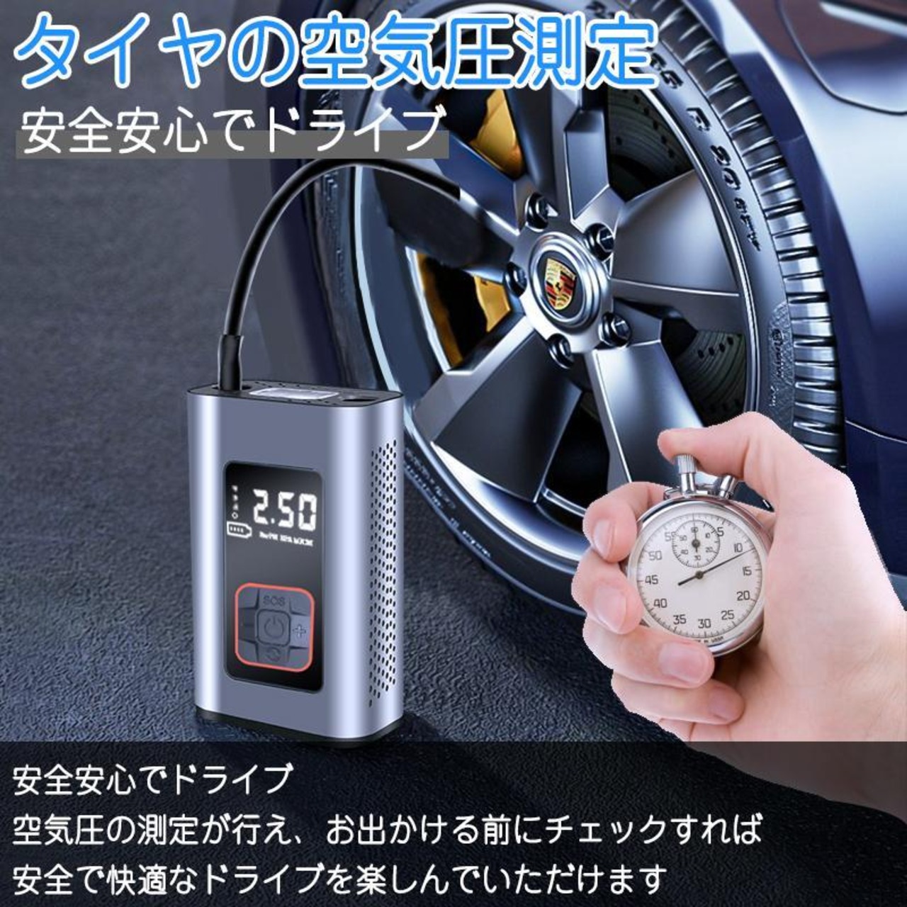 IC制御でスマートに空気充填。車、バイク、自転車、レジャー用品にも対応する電動エアコンプレッサー