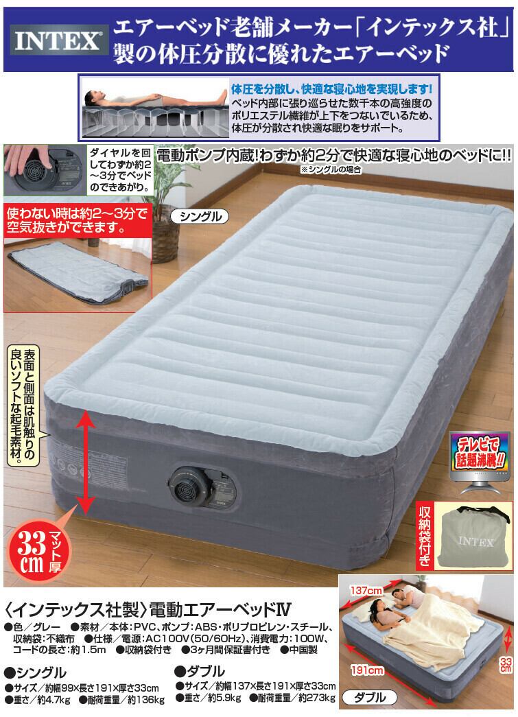 インテックス社製 電動エアーベッドIV ダブル 電動ポンプ内蔵 マット厚33cm SD