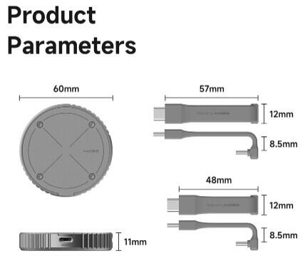 直径60mm、厚さわずか11mm、重さ59gのコンパクトな筐体は、アルミニウム合金とシリコン素材を採用。持ち運びやすく、どこへでもスマートに連れて行けます。