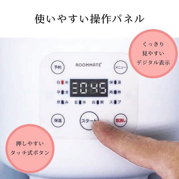 ROOMMATE コンパクト炊飯器 OKOMEDAKI RM-204H 3合 マイコン式 マットブラック 一人暮らし 温度センサー搭載 SD