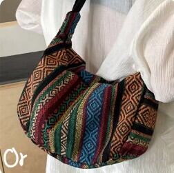 トライバルスタイルショルダーバッグ エスニック ジッパー開閉 クロスボディ 手洗い可 エッジペイント裏地 ギフト AEX