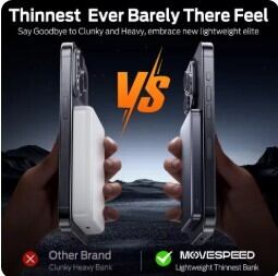 MOVESPEED スリム磁気パワーバンク S10で、重くて不器用な充電器に別れを告げ、ゲームを続け、涼しく過ごしましょう。あなたの充電体験を、次のレベルへと引き上げます。