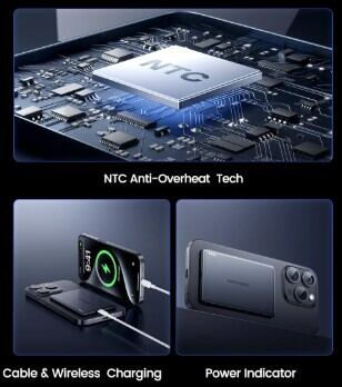 NTC過熱防止技術を搭載し、充電中のデバイスへのダメージを最小限に抑え、バッテリーの寿命を守ります。連続的な低温急速充電により、安心してデバイスをパワーアップできます。
