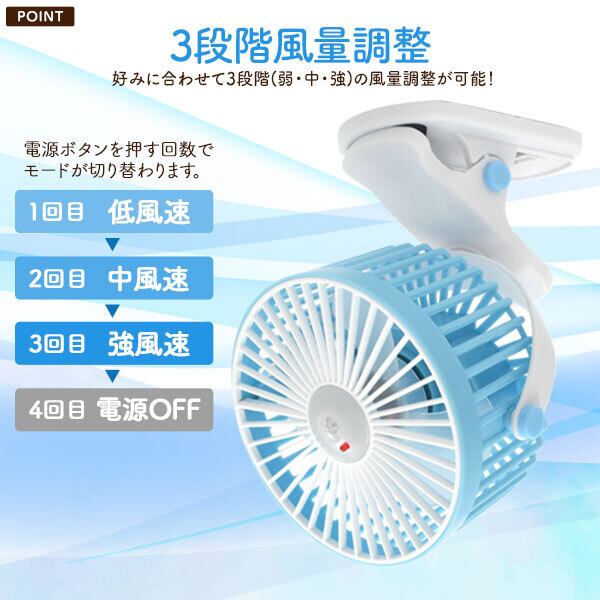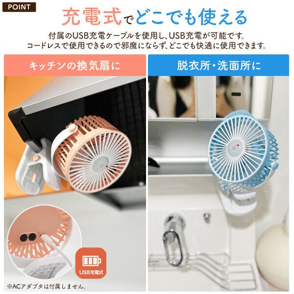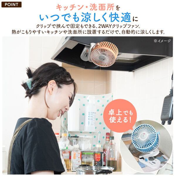 クリップで挟んで固定できる2WAYクリップファン。