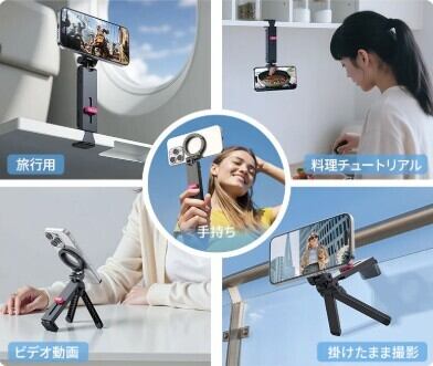 表面でスマホを吸着し、縦横をすばやく調整;裏面でアクセサリーを拡張し、簡単に美しい写真を収める。