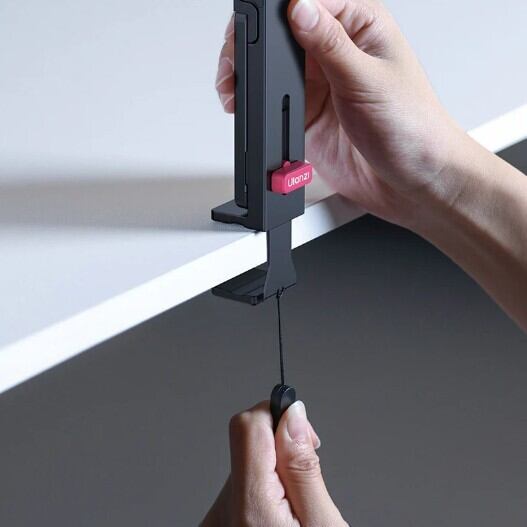 隠しフック設計で、ディスプレイ、椅子背もたれ、ドア枠、手すりなどに掛けられ、瞬時に高角度視点に変身。