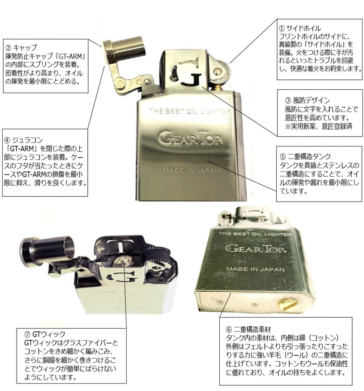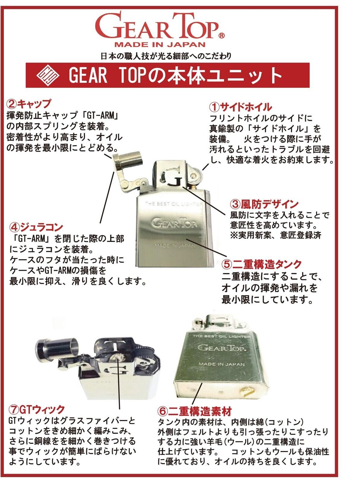 全製造工程を日本国内で行うGEAR TOP®には、熟練の職人による日本の最先端の金属加工技術が施されており実用性、品質ともに高く、かつ先例のない「オイル持ち」を実現した『ECO』なオイルライターとなっています。表面加工やデザインの自由度を楽しめる要素も取り入れ、今後様々なデザインを提案していきます。今後のGEAR TOP®の展開に、どうぞご期待ください。