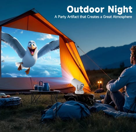 ●投影180°回転: 180°の柔軟な投影角度により、壁、天井、あらゆる表面に投影できます。