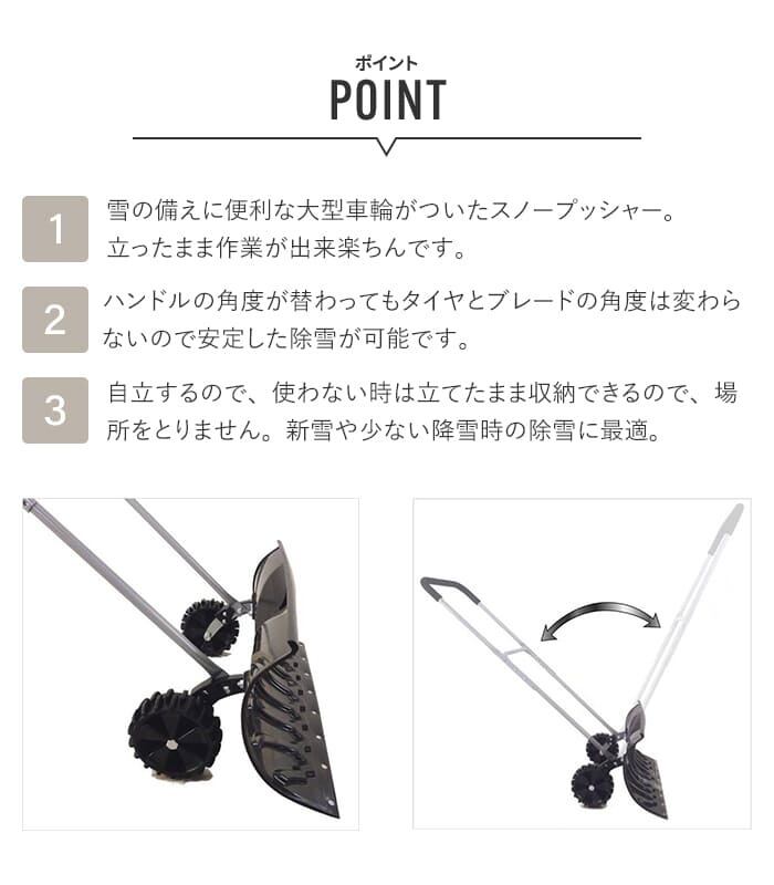 ・大型車輪がついたキャスター付きのスノプッシャー。
