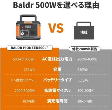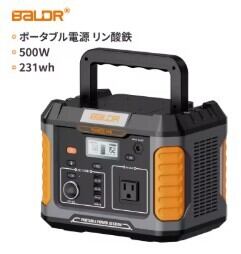 BALDR ポータブル電源 500W 瞬間最大1000W リン酸鉄 大容量 231Wh ポータブル電源 リン酸鉄 高出力 小型 アウトドア キャンプ 非常用 AEX