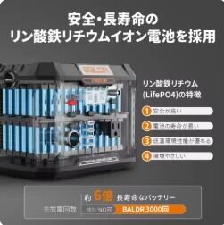 【高度な安全管理】BALDRポータブル電源は安全性に高度な重視を与えて、安定性や安全性高いテスラ系リチウムバッテリーを採用し、FCC、RoHS、PSEなどの安全認証が合格済となります。最先端バッテリーマネージメントシステム(BMS)により電圧や温度を適切に管理し、過充電および過放電を防止し、過負荷や過電圧から保護します。バッテリーのエネルギー利用率を改善し同時に、バッテリー寿命の延長も実現しました。大容量のため、二つの換気システム搭載し、過熱保護機能がより優れて過熱により爆発か発火がありません。