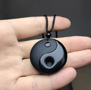 黒曜石 ペンダントネックレス 陰陽太極 オプシディアン 護符 開運 スピリチュアル ギフト AEX