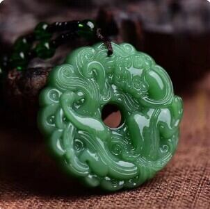 天然翡翠 ミャンマー産 ペンダントネックレス 手彫り ドラゴン 護符 幸運 魔除け ジュエリー スピリチュアル ギフト AEX
