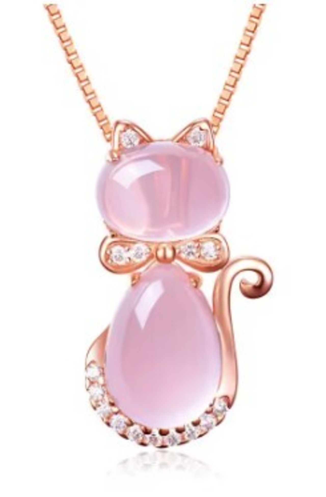 ピンク猫のペンダントネックレス クリスタル キュートジュエリー ローズゴールドメッキチャーム 護符 開運 スピリチュアル 韓国デザイナーギフト AEX