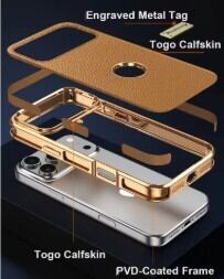 iPhone 高級トーゴ産カーフスキン 本革ケース ロゴウィンドウ MagSafe対応 耐衝撃 抗指紋 アンチスクラッチ 防塵 非スリップ 耐久性 AEX