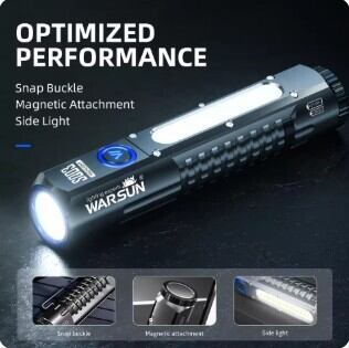 【NEW】Warsun LED戦術ライト 2000lm 強力トーチライト COB マグネット USB充電 防水IPX6 8ライトモード ランタン キャンプ ハイキング 自衛 AEX