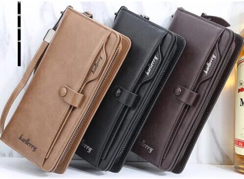Baellerry ビジネスロングウォレット 長財布 クラッチバッグ 大容量 高品質PUレザー ジッパーケース カードホルダー 拡張プレート ストラップ AEX