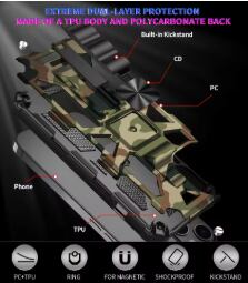 強力な耐衝撃性と多機能性を兼ね備えた、究極のハイブリッドアーマーケースが登場しました。ミリタリーグレードの堅牢設計と迷彩柄のタフネススタイルで、日常からアウトドアまで、あらゆるシーンであなたのiPhoneを守り抜きます。