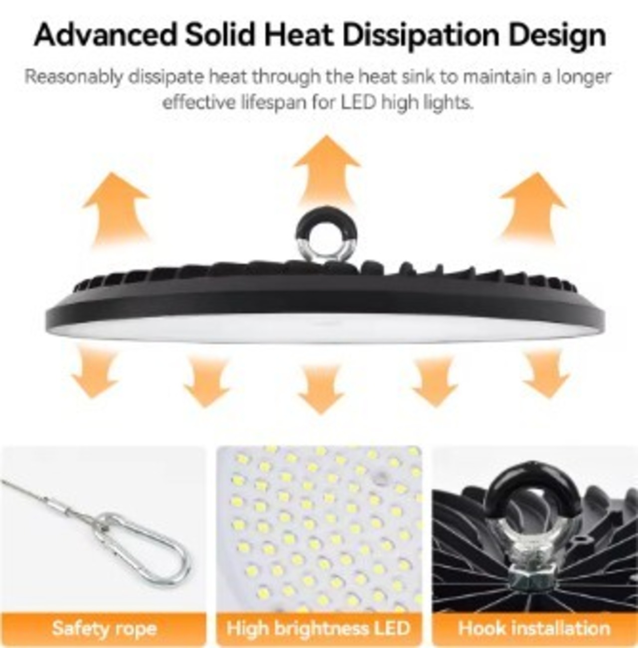 優れた放熱設計と高効率LEDチップを採用した産業用照明。このLED UFO ハイベイライト(200W)は、110LM/Wの高輝度と50,000時間以上の長寿命を実現し、照明コストを大幅に削減します。IP65防水性能も備え、屋内外の幅広い工業環境に最適です。