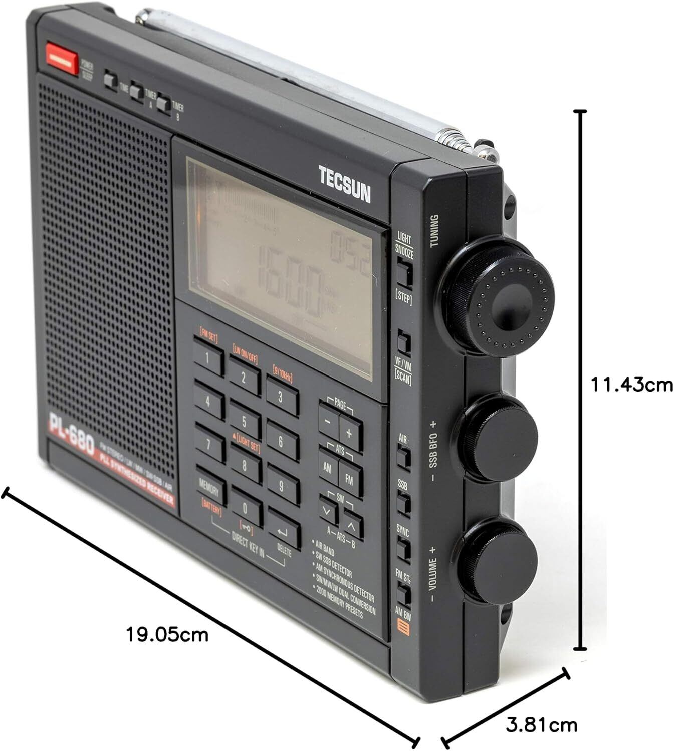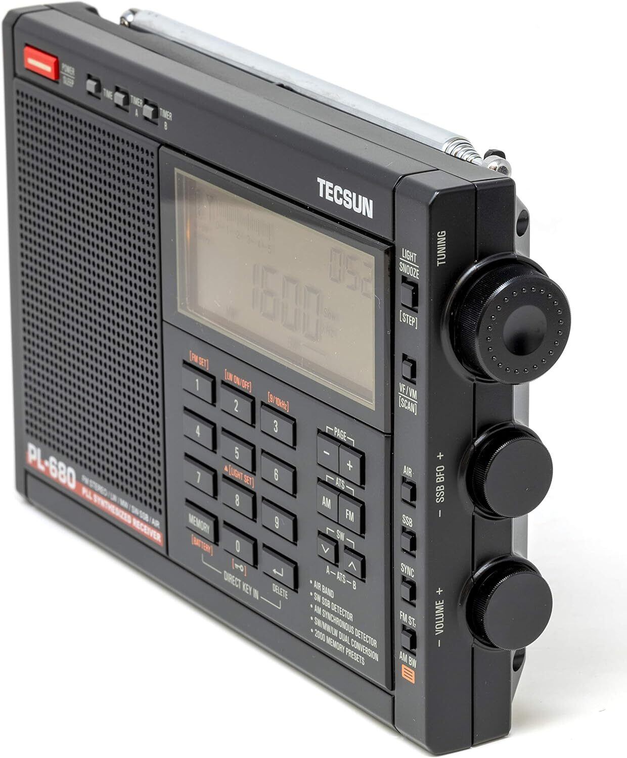 ハイエンド短波ラジオ TECSUN PL-680 SSB・エアバンド・同期検波 ポータブルBCL受信機 FMステレオ/AIR/LW/MW/SW PLLシンセサイザー ワールドバンドレシーバー 2000局プリセットメモリー デュアルコンバージョン ATSオートプリセット スリープタイマー アラーム USB充電 専用レザーポーチ AEX 【国際モデル】