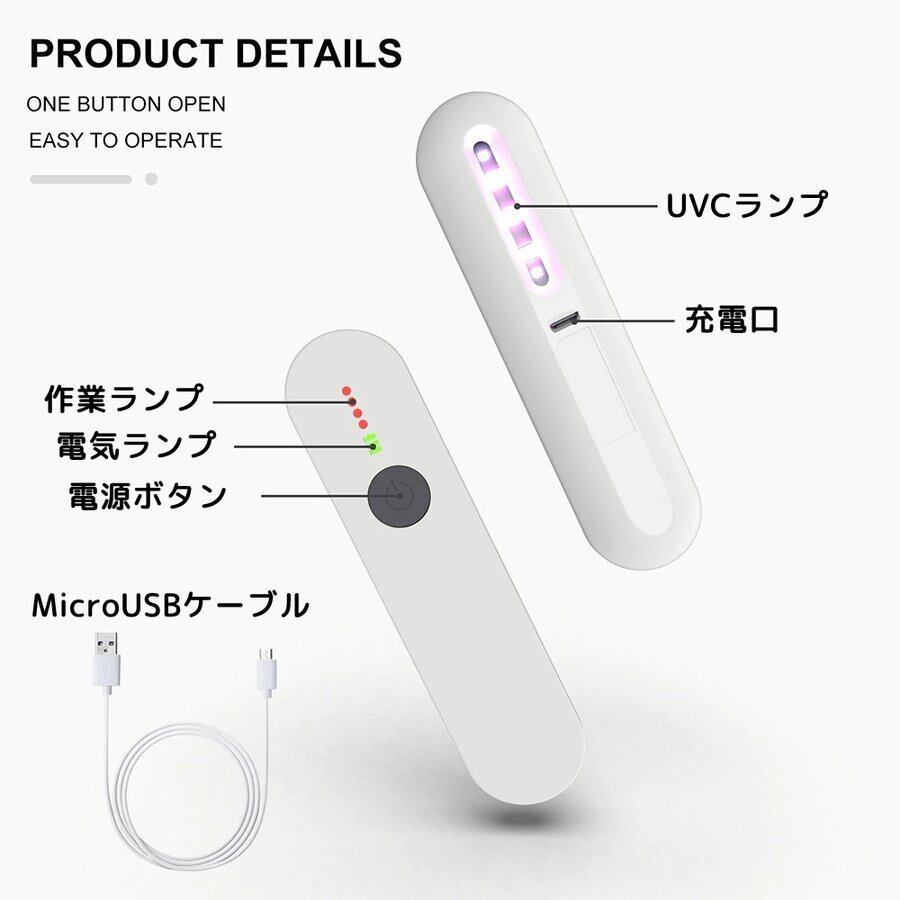 紫外線除菌ライト UVC殺菌ライト ウイルスカット 操作簡単 滅菌 USB充電 400mAh 強力殺菌 NS
