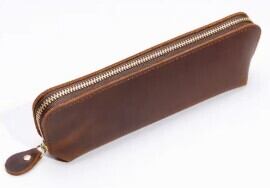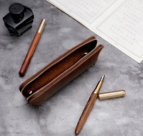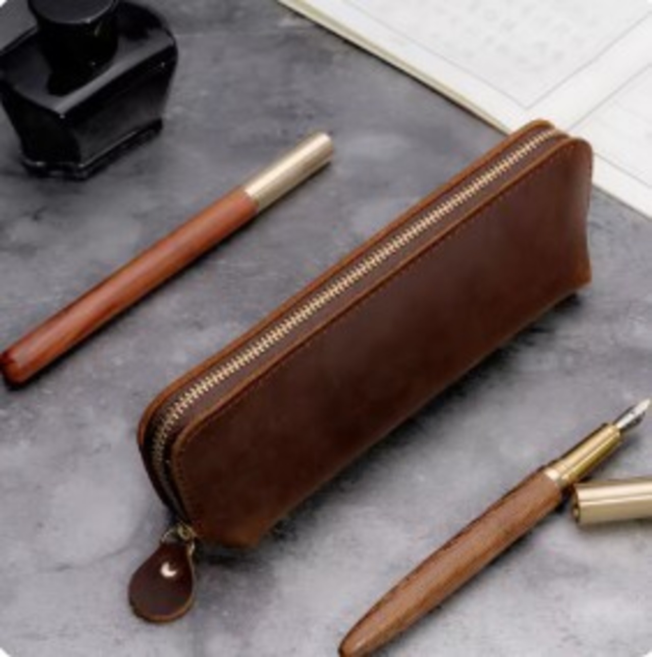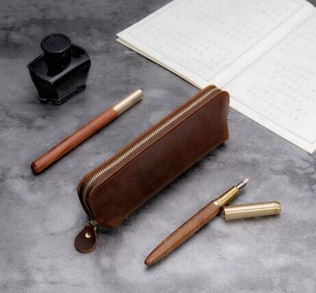 ヴィンテージ ペンシル ケース - 本革 クレイジーホースレザー なめらか 文具オーガナイザー オフィス ビジネス ミニマリスト クリエイター ハンドメイド ギフト AEX