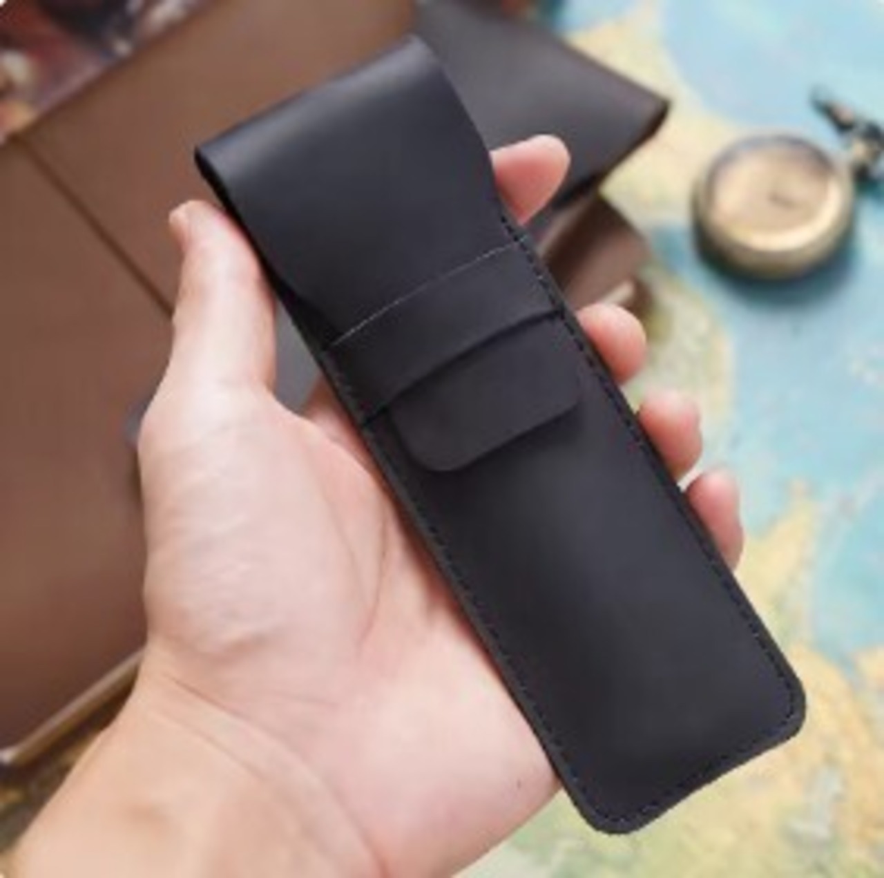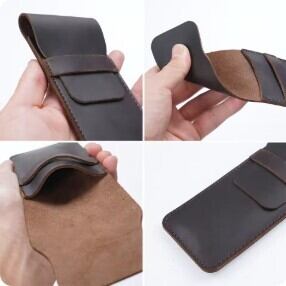 使うほどに味わいを増す**本革(クレイジーホース/ワックスレザー)**を使用した、ヴィンテージ感あふれるペンスリーブです。熟練の職人技(クラフトマンシップ)によって丁寧に仕上げられており、オフィスやビジネスシーンはもちろん、クリエイターやミニマリストにも最適なデザイン。大切なペンを2〜3本収納し、美しく保護します。