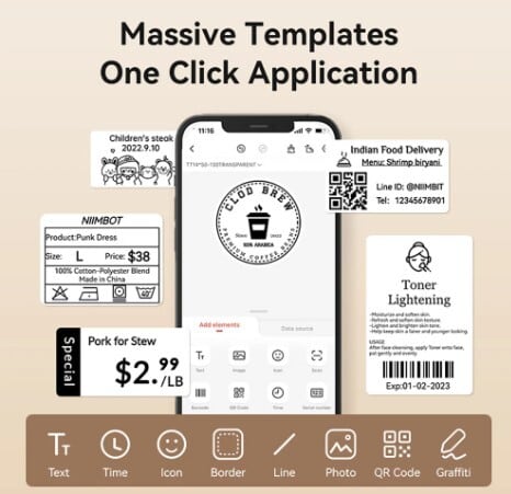 ・強力なNIIMBOTアプリ: 公式アプリには、30以上のフォント/言語(日本語、英語、中国語、韓国語など20言語以上サポート)、100以上の境界線、1500以上のシンボル、バーコード、QRコード、写真、OCRプリントなど、豊富な機能が搭載されています。