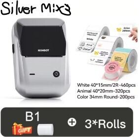 NIIMBOT B1 ポータブルサーマルプリンター ミックスラベル(3巻)セット 2インチ粘着ラベル ミニプリンター Bluetooth スマホアプリ連携 日本語対応 高速印刷 節電 AEX
