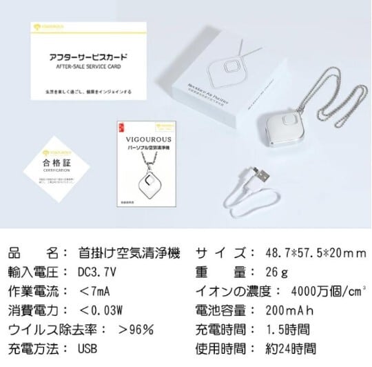 首掛け空気清浄機 携帯型 小型 マイナスイオン発生器 usb充電 ネックレス ポータブル ギフト NS