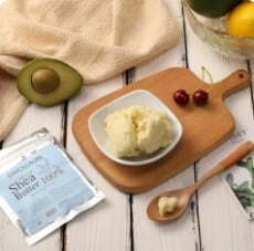 シアバターは天然の油分や非ケン化成分が豊富に含まれており、非常に高濃度で栄養価が高い特性があります。そのため、塗布後にベタつき感が残る場合がございますので、気になる場合はご使用量を少量ずつ調整してください。