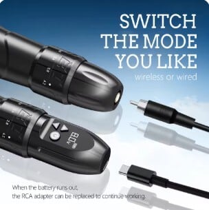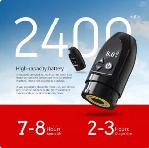 * 大容量**2400mAhバッテリー**を搭載。頻繁な充電なしに、**最大7~8時間**のタトゥー作業を連続してサポートします。