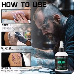 * 一度転写したデザインは長持ちし、タトゥー施術中の摩擦や拭き取り作業に対して高い耐性を発揮します。