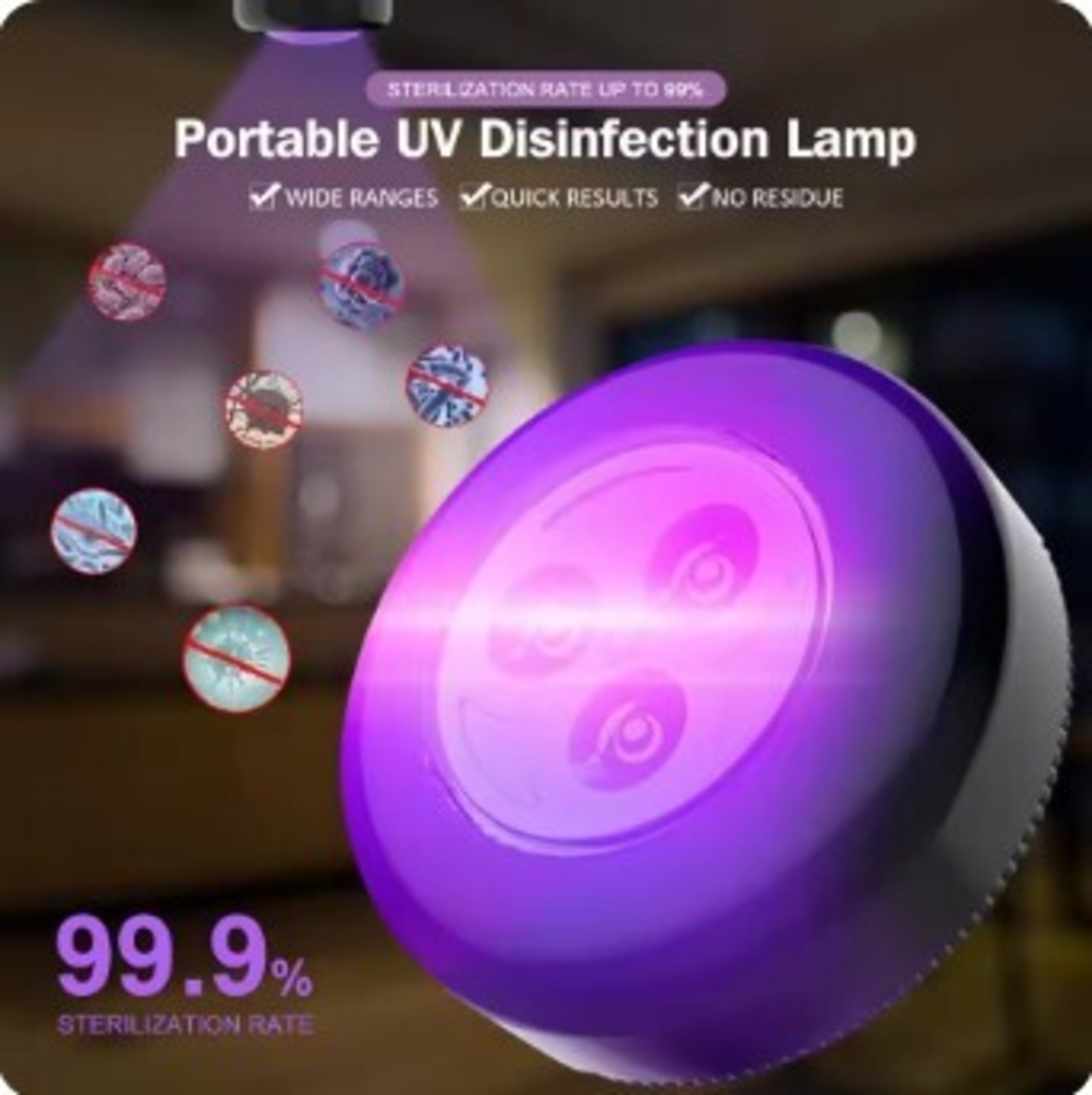 このポータブル紫外線殺菌灯は、有害な化学物質を使用せず、UV-C光による純粋な物理的消毒で、生活空間の細菌やウイルスを不活性化します。