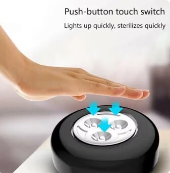 わずか3分間の照射で残存するバクテリアの99%以上を殺菌する高い効果を持ちながら、手のひらサイズのコンパクト設計を実現。電池式でどこにでも設置・移動が可能で、日々の安心をサポートします。
