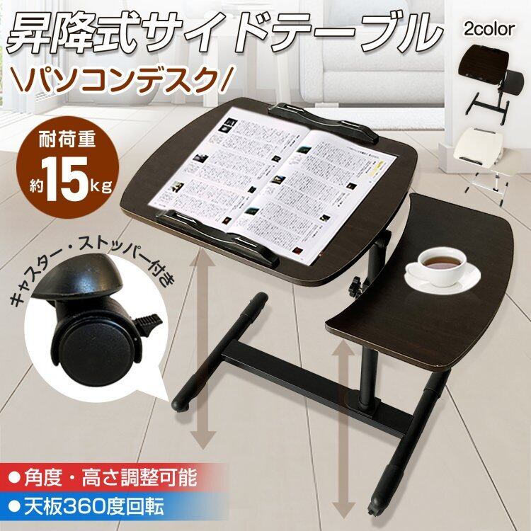 昇降式サイドテーブル 昇降式 角度高さ調整 おしゃれ スリム キャスター付き ベッドサイド 介護 ノートパソコン 演奏 NS