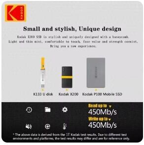 信頼のブランドKODAKから、機能美と性能を両立させたポータブルSSD X200が登場。最大450MB/sの読み取り速度を誇り、高画質な写真や動画、大容量データの転送をストレスなく行えます。わずか38gの超軽量ボディに、防塵・耐衝撃性能を備えたユニークなハニカムデザインを採用。付属のアダプターにより、PCだけでなくAndroidスマートフォンやテレビ、ゲーム機(PS4等)でも即座に使用可能です。